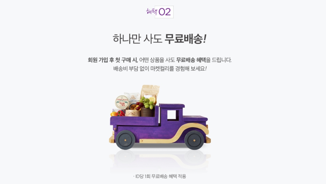 - 가입 후 30일 동안 2만원 이상 무료배송 + 주문금액의 5% 적립