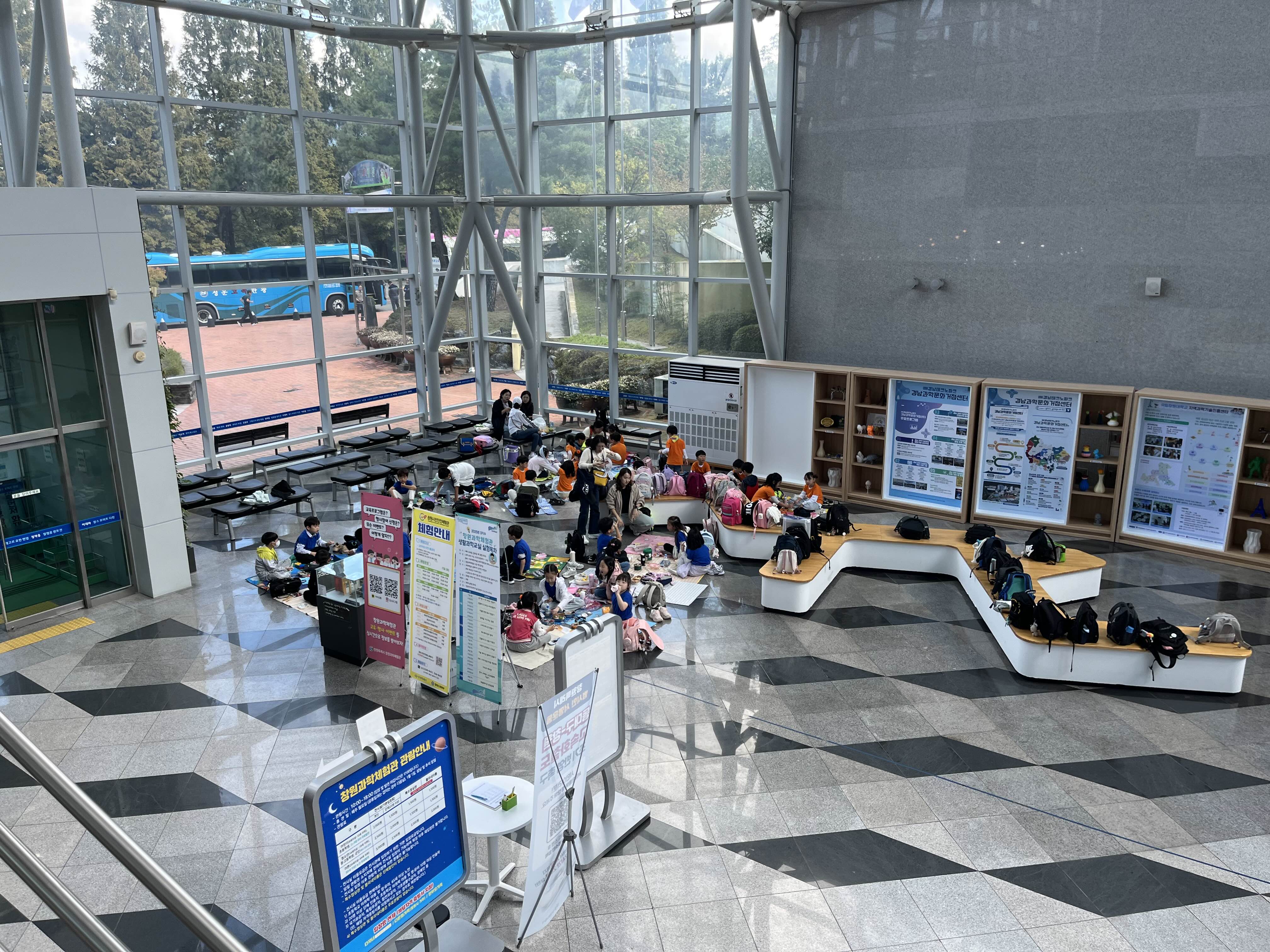 체험학습 온 아이들은 점심시간 되니 1층 로비에 돗자리 깔고 식사하더라. 조잘조잘 떠들며 먹는 모습 너무나 귀여움.