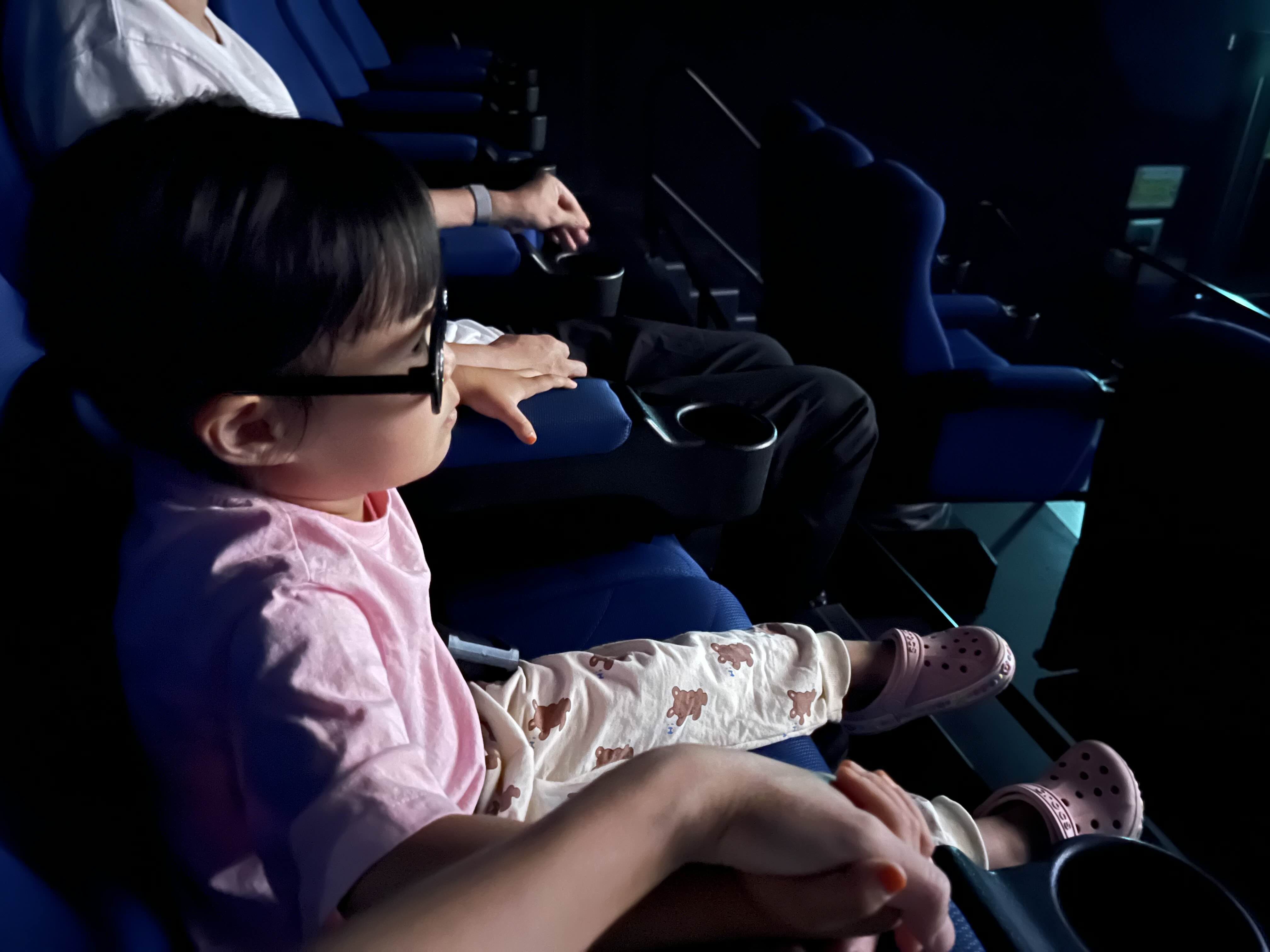 관람중 모습 찰칵. 미동도 없이 집중해서 본다. 무서워하거나 놀라진 않았음. 예전에 다른 과학관에서 본 경험이 있어서일까.
